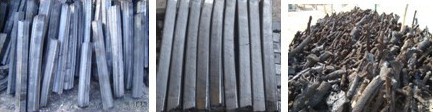 自燃式炭化爐炭化的各種產(chǎn)品(機(jī)制木炭和原木炭)。